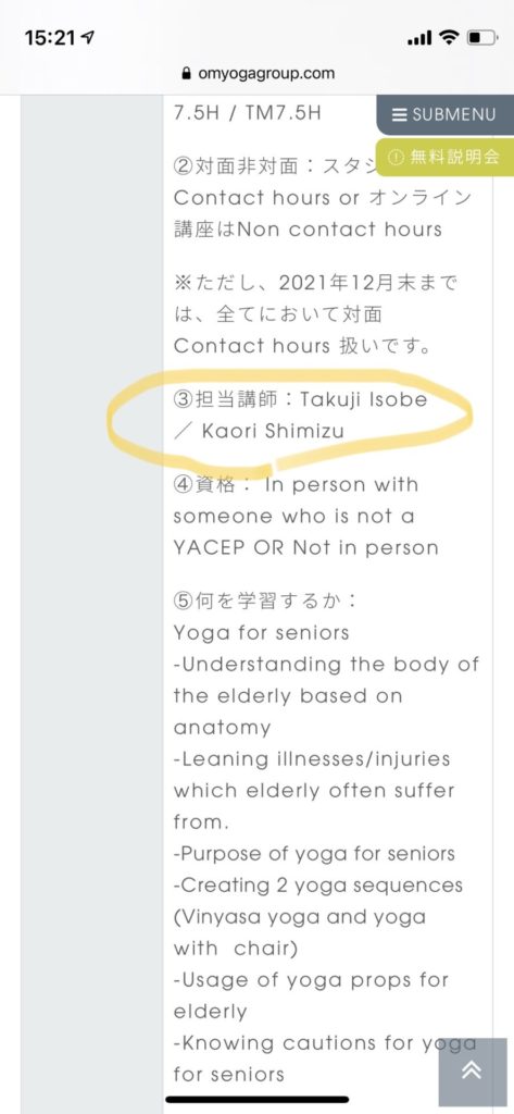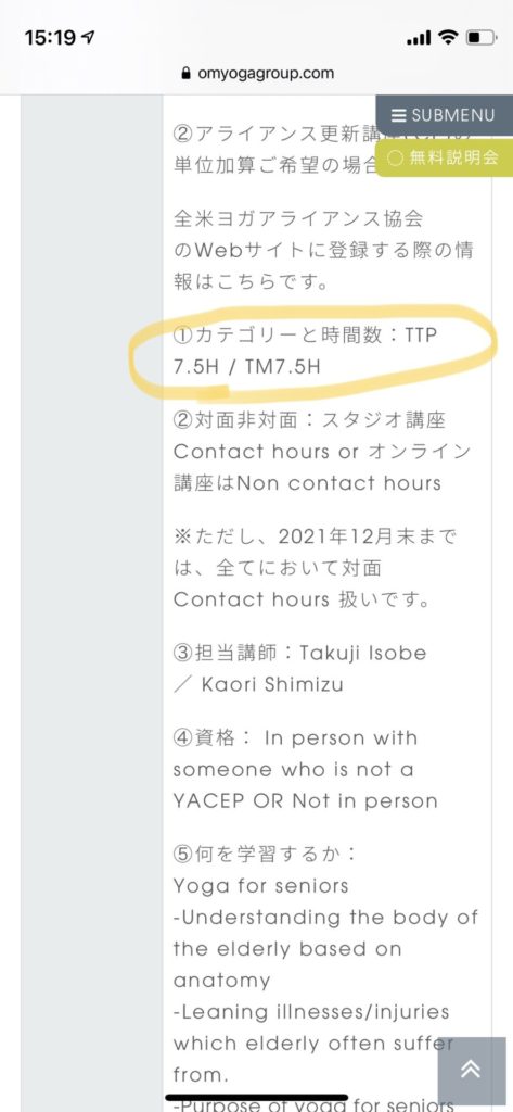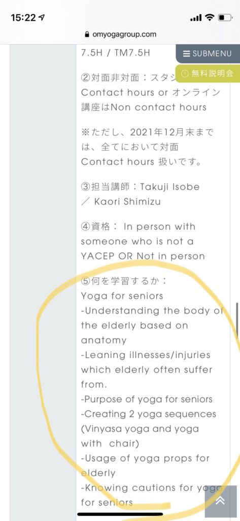 以下、参考ページ(シニアヨガ 教育カテゴリー時間数)