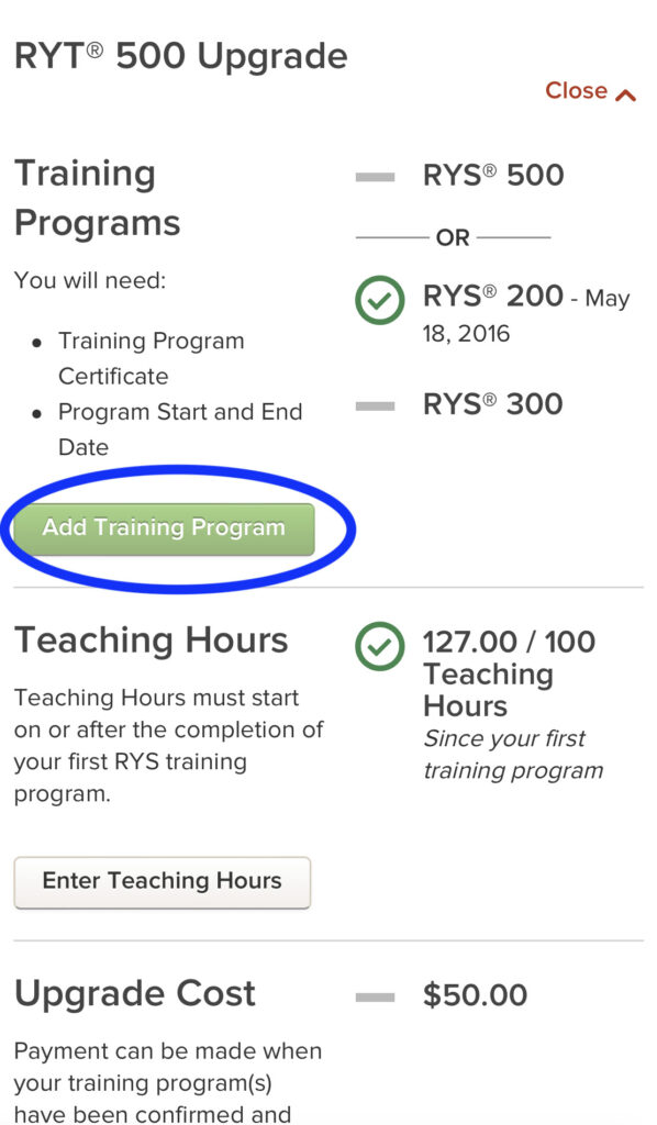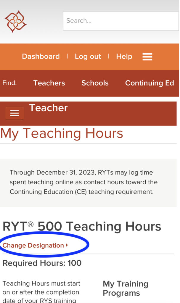 スマートフォン・パソコンのどちらからでも申請することができます。今回は、スマートフォンからのRYT500 (RYT200申請後の残りの300時間)登録と申請の申請手順を紹介します。