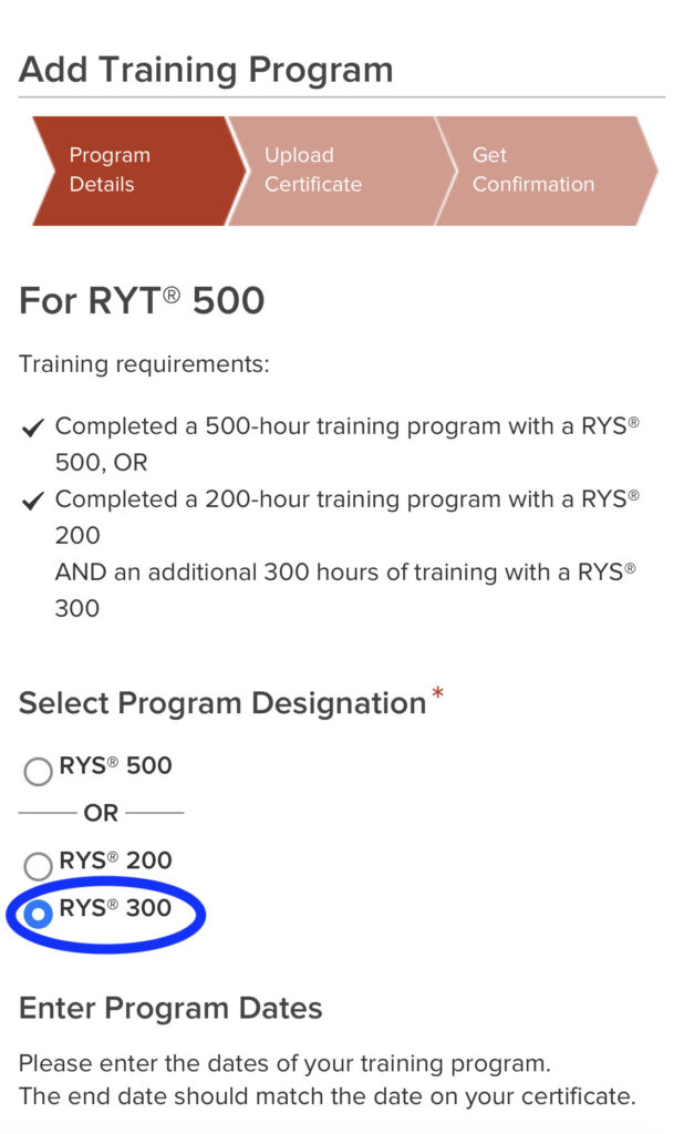 RYT200取得後、RYTの300時間を終了したら、“全米ヨガアライアンス500時間認定ヨガインストラクター”として登録作業が可能になります。