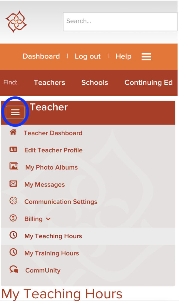 左上の3本線をクリックし、My Teaching hoursをクリックします。