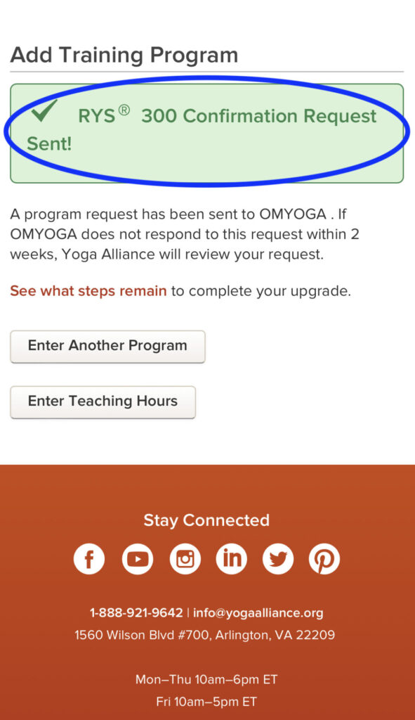 卒業校の承認を終えると、ヨガアライアンスから学校承認の完了メールが届きます。学校によって差はありますが、OMYOGAでは承認まで約3日以内(3営業日)が目安となっています。3日以上経っても承認がない場合は、一度スクールに問い合わせてみてください。