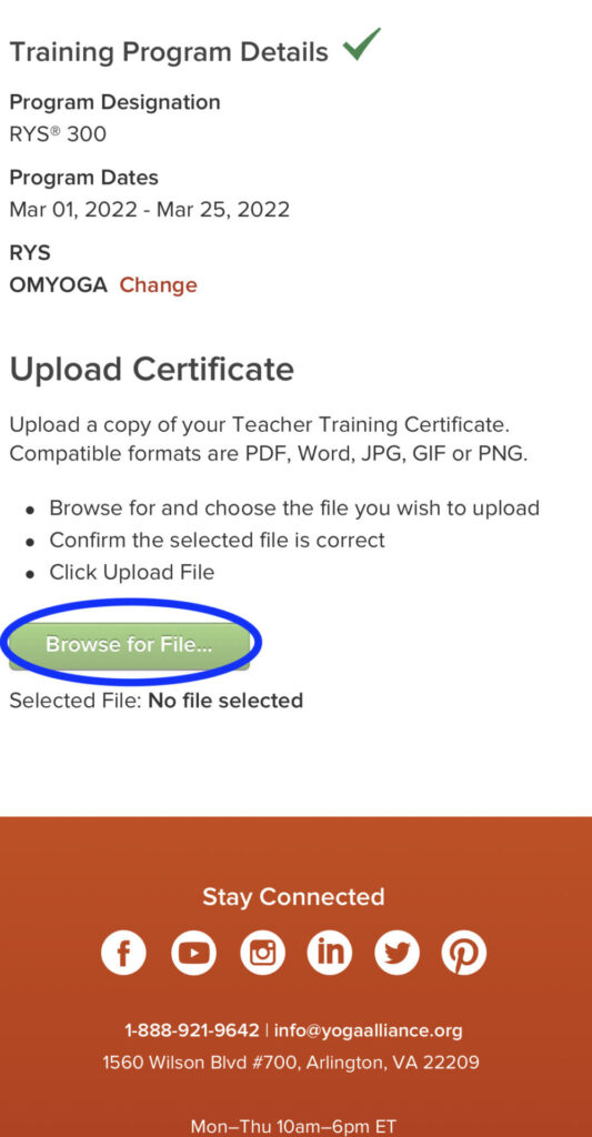 緑のBrowse for fileに修了書をアップロードします。