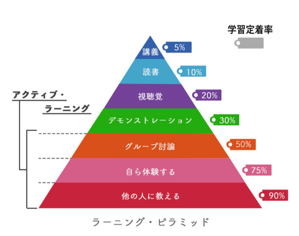 理由は、動画視聴のみの学習定着が5%に対し50~100%の定着率があるためです。